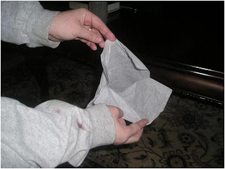 Take your tissue paper and gently separate the layers (most Kleenex tissue has at least 2 layers) being careful not to tear them. Eyeball the area you are going to treat first and make sure you have enough single layers of tissue to cover that area; including the door/window openings.